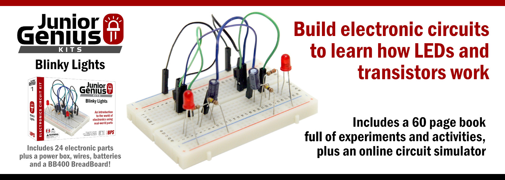 Featured Product Build electronic circuits to learn how LEDs and transistors work with the Blinky Lights kit! View Product Info