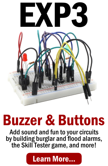 Take your circuits to a whole new level with Integrated Circuits! Learn how Integrated Circuits and diodes work with advanced LED chaser and flasher circuits in Expansion #2! Build three new types of circuits: 10 LED Chaser, 5 LED Back-and-Forth, and a 3 LED Traffic Light.