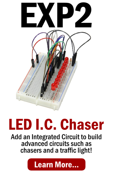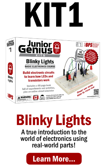 Using the Junior Genius Kits Online Club, you'll find new circuits that get you started by showing how to switch multiple LEDs with a transistor so you can flash 5, 10 or more LEDs at a time!