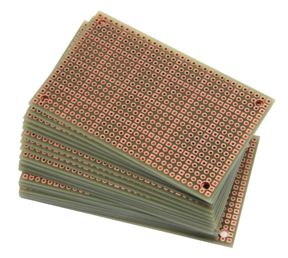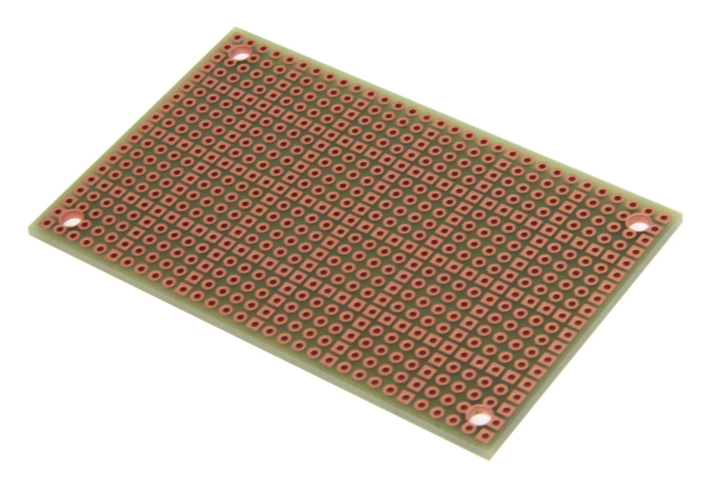 • Pad-per-hole prototyping board with plated-thru holes. A square pad every 5th hole makes it easy to align components on top and bottom.