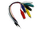 The CA series wires have alligator clips going to male breadboard pins. They are great for making electrical connections between larger off-board parts and your breadboard project. The machined male breadboard pins with strain relief heatshrink tubing provide a reliable long-lasting connection to your breadboard.