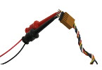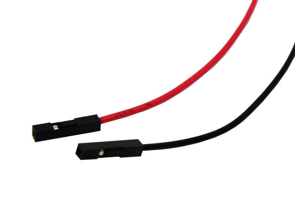The CJ-F series wires have J-clip hooks and female sockets. They are great for making secure electrical off-board connections for your development board. The J-Clip grabs tightly to wires, parts, and pins to make a reliable connection. The J-Clip is better than alligator clips for connecting to connector header pins because it can connect to one pin without touching adjacent pins.